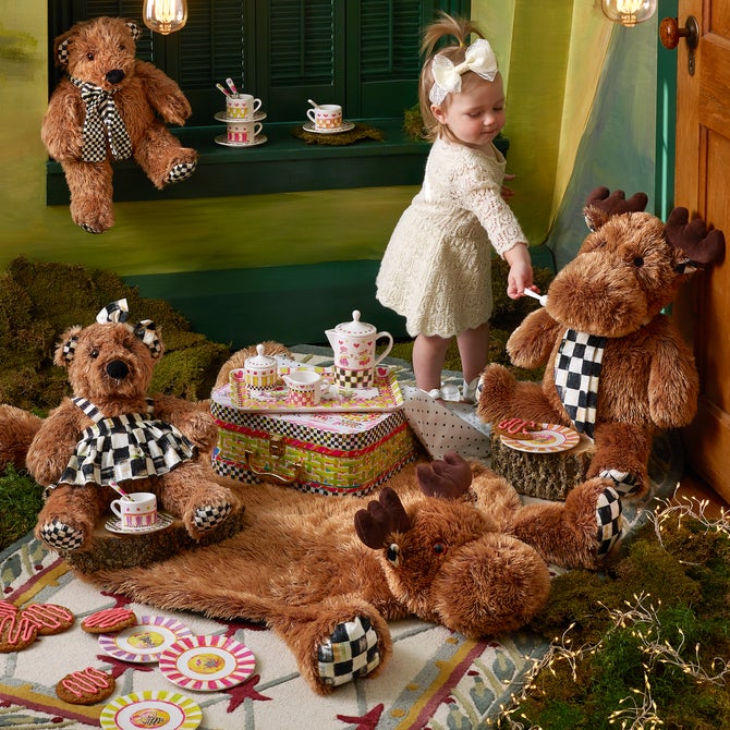 A forest friend might be exactly what your child needs. Kenzie the Bear comes outfitted in her finest—a sweet Courtly Check® print dress and matching bow—so she’s dressed for high tea or a day of exploring. Furry and soft, her huggable body will be a source of cuddles and fun for many imaginative hours. Product #: 77000-003