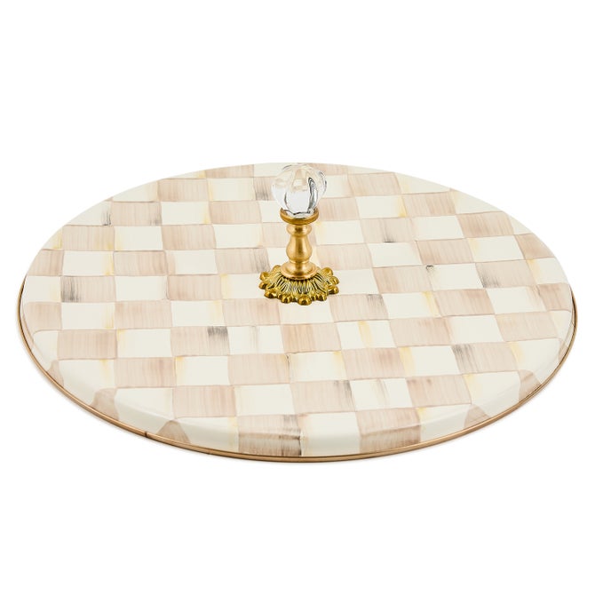 Whether you’re creating a charcuterie or presenting pastries, the Mocha Check Cheese Course serves with style. It features our hand-painted checks on a heavy-gauge, hand-glazed steel underbody, topped with a clear glass knob for easy handling. Perfect for adding a touch of elegance and pattern to your next gathering, it elevates both casual and formal entertaining with ease. Product #: 89289-840