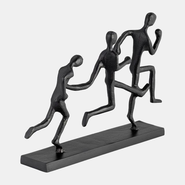 Metal 3-man Running Sculpture in Black is a captivating decorative piece that adds a touch of artistry to your space. With its unique design featuring three running figures, it brings a sense of motion and energy to any setting. This sculpture is perfect for tabletop or desktop, adding a distinctive and playful accent to your home or office decor. The beautiful black finish on the metal and wooden base, enhances its visual appeal and complements a variety of decor styles. Let your creativity soar as you find the perfect spot for this sculpture, showcasing your unique style.