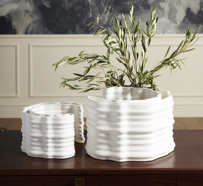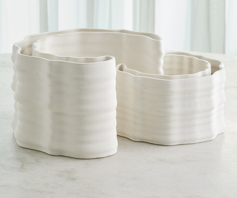 The Crescent Printed Vases feature a sleek matte white ceramic finish that embodies modern design. Crafted with advanced 3D printing technology, these vases offer a unique artistic touch, perfect for enhancing any space.