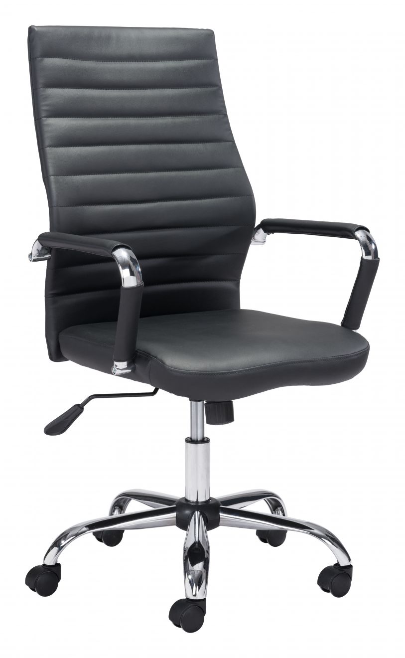 Get your work done in style with this classic armchair, showcasing faux leather upholstery and rolling design. Set it behind a mahogany desk for a traditional look.