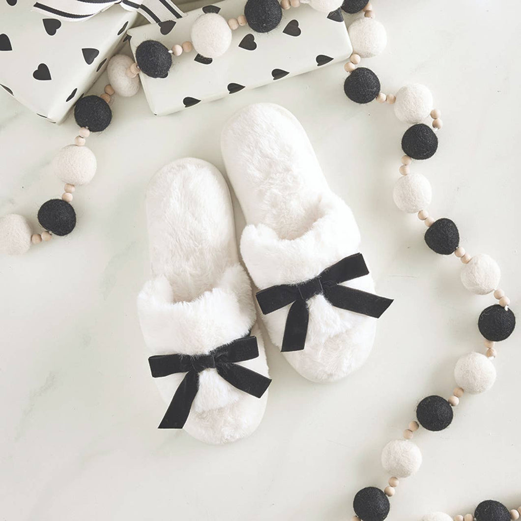 Indulge in warmth and charm with our cozy plush slippers featuring adorable bows! Treat your feet to softness and style. Perfect for lounging at home or adding a touch of cuteness to your daily wear!