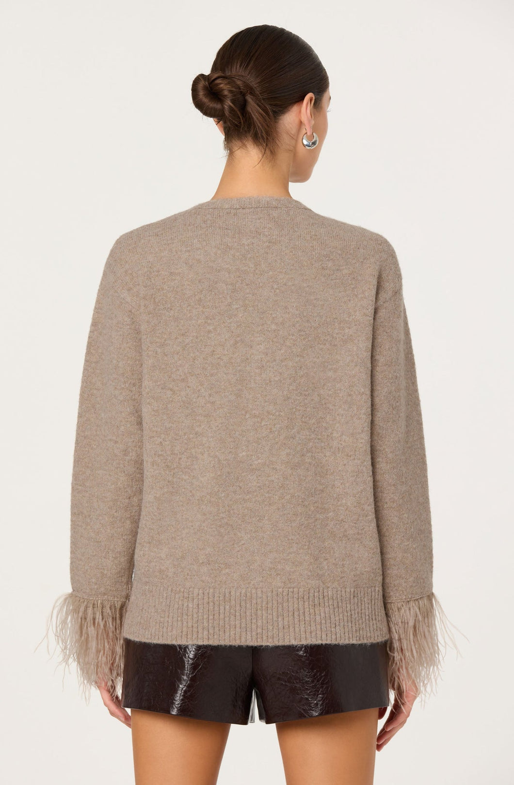 Sweet meets sophisticated in this rhinestone embellished sweater - a charming cardigan with feather trimmed sleeves. Perfect for brunch dates, office chic or cozy weekends with a stylish twist.