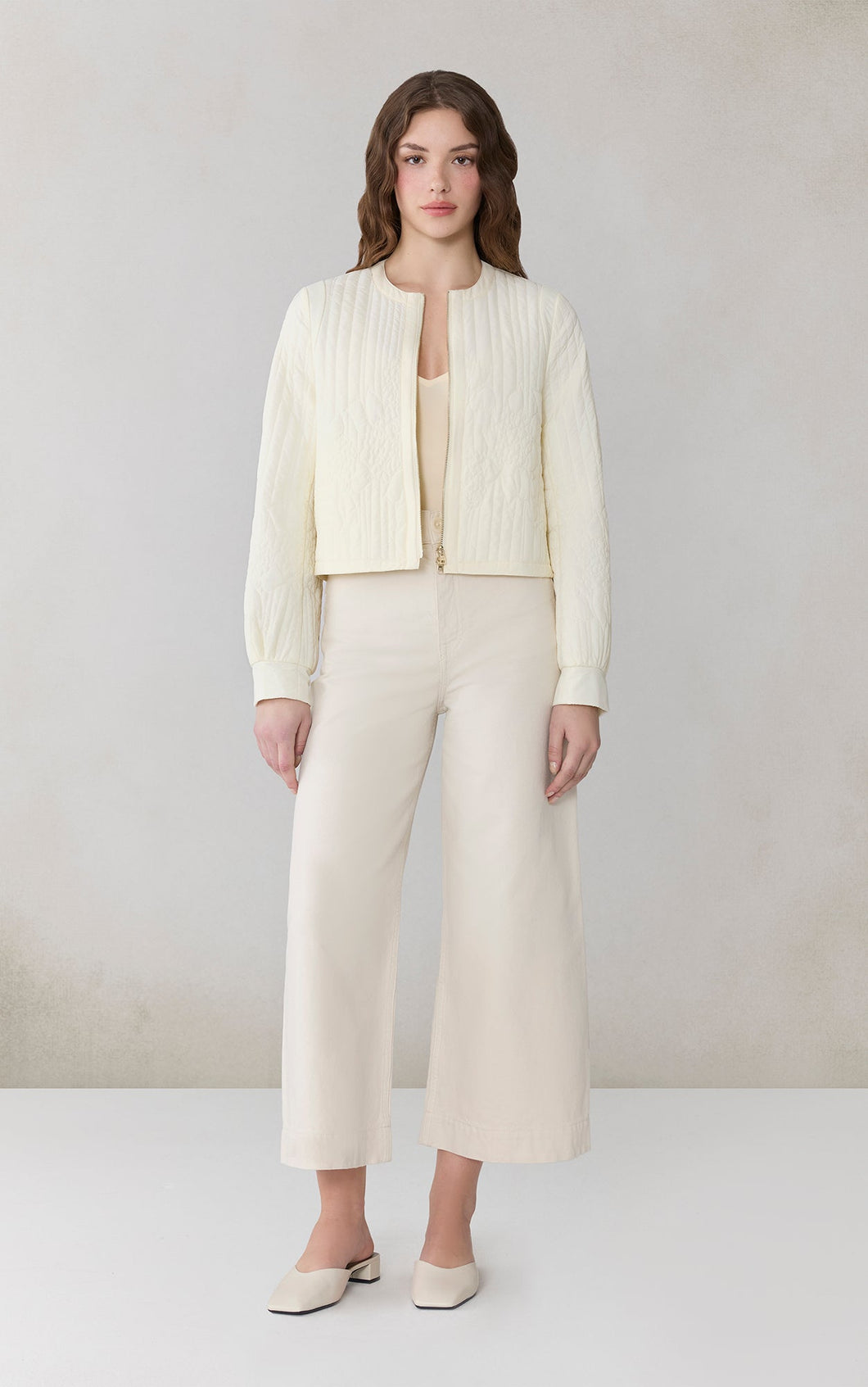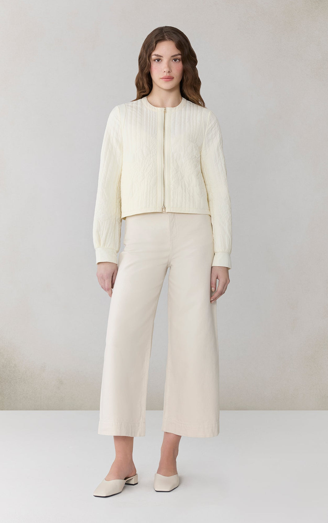 REITA by SOIA is a quilted jacket that merges softness and structure. Designed with floral quilting and a minimalist collarless cut, it offers just the right amount of warmth and shape for cool-weather layering.