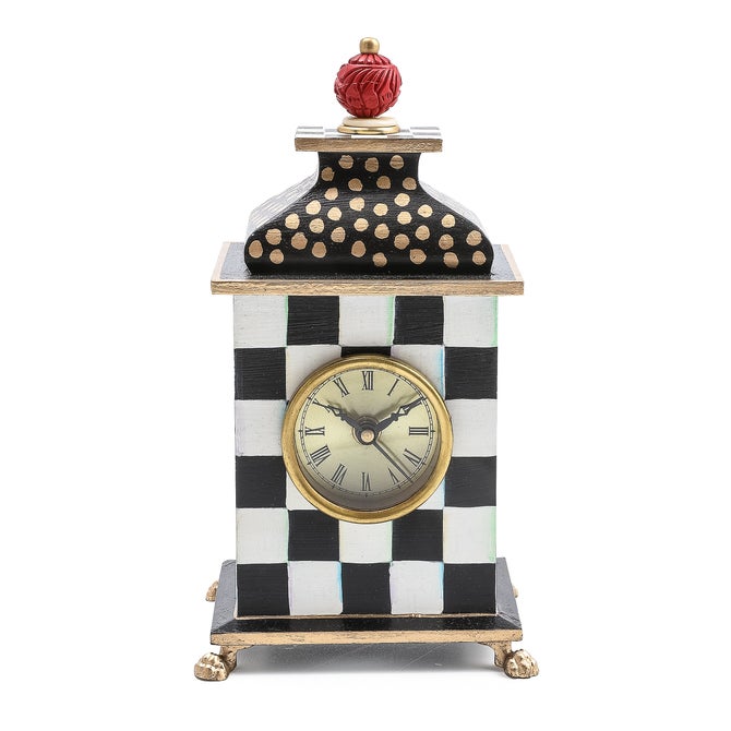 We’re guessing your days filled to the brim, so why not add some fun as you mind your minutes with our Courtly Check® Desk Clock? This toleware collection updates a classic craft with a MacKenzie-Childs twist: This handsome timekeeper is bedecked with hand-painted checks and jazzy gold polka dots that go beyond basic black and white. From the home office to the corner office, this eye-catching piece gives new meaning to “watching the clock.”Product #:44107-045