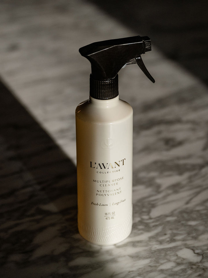 This luxury cleaning kit set features a custom-designed Geometry kitchen towel, crafted to complement L’AVANT’s Fresh Linen Multipurpose Surface Cleaner. Blending luxury, sustainability, and function, this collaboration delivers high-performance cleaning essentials with effortless beauty—because every detail matters.