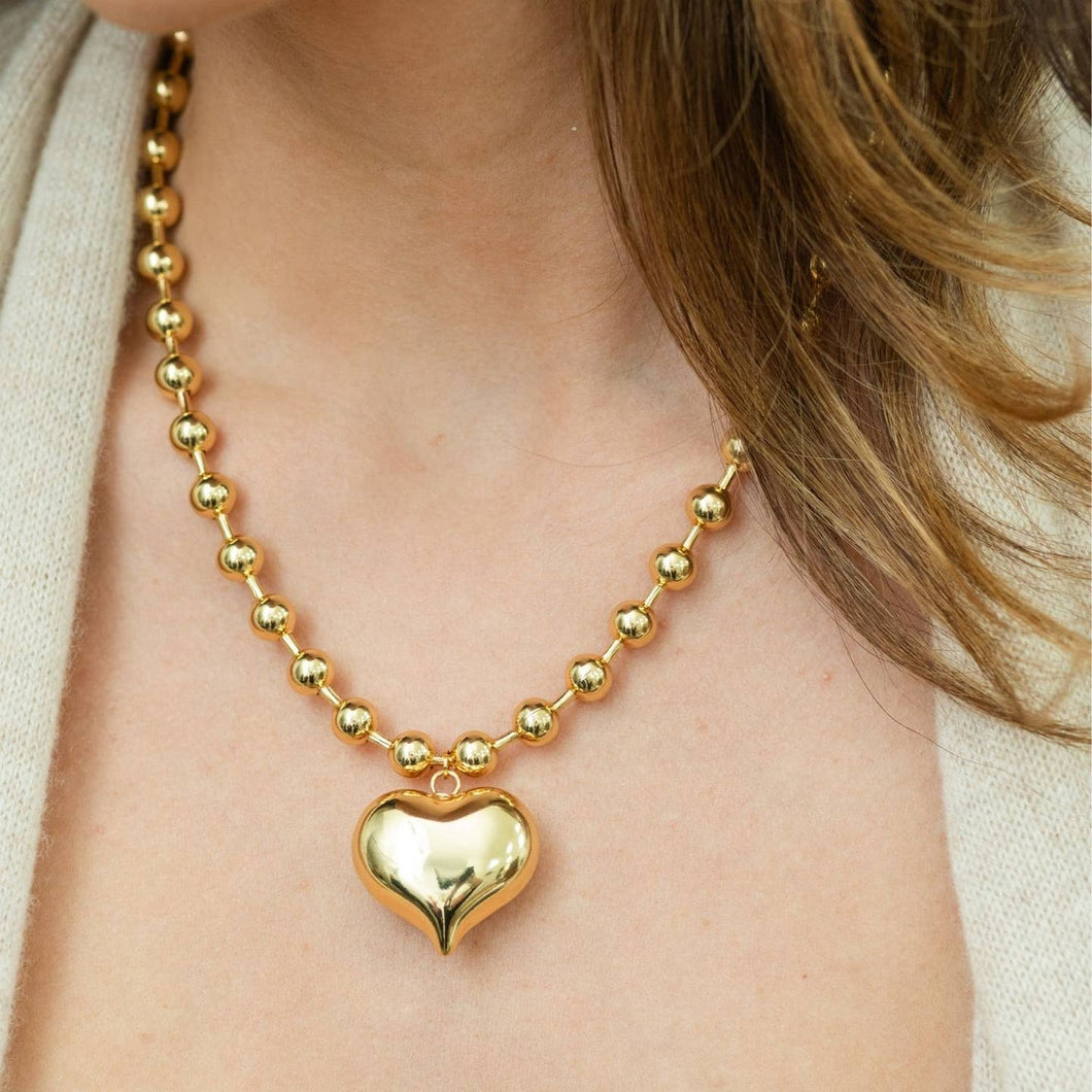 Large Bubble Heart Gold Statement Ball Chain Necklace