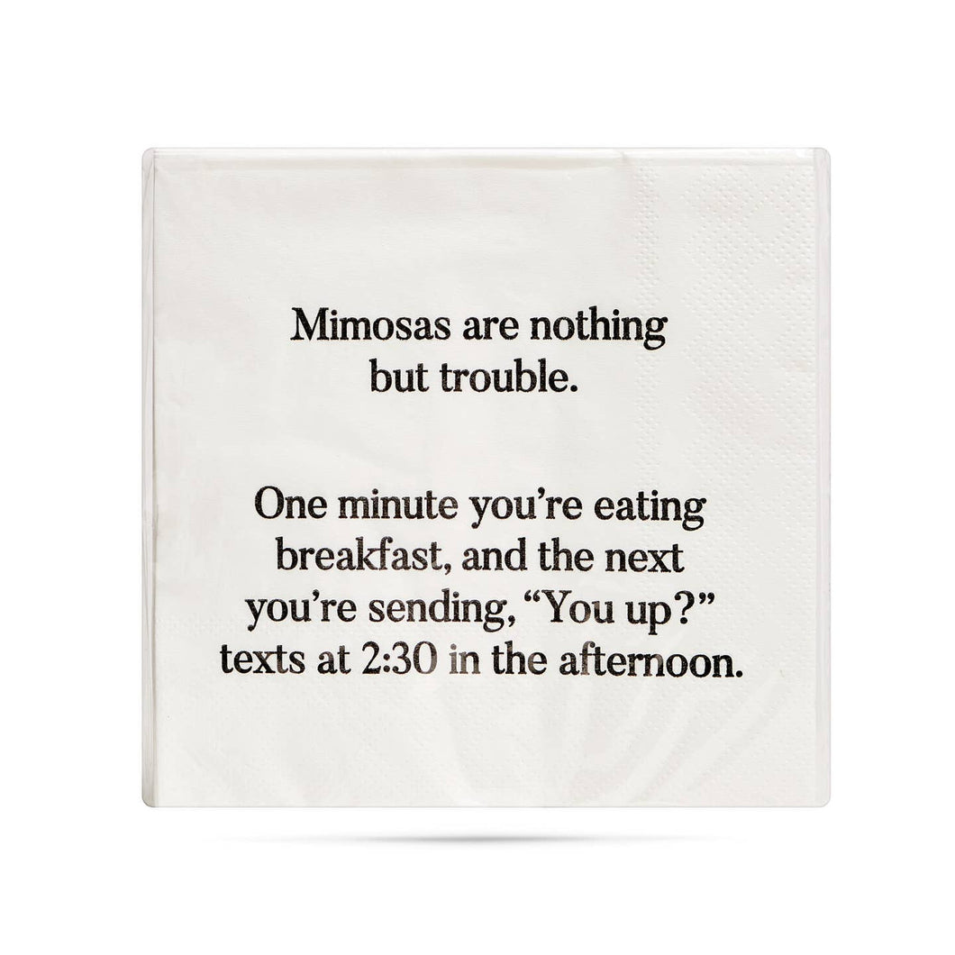 Our 3-ply, 5x5 folded, white napkins are printed with crisp black ink. They come cellophane wrapped in packs of 20, and we think they're some of the funniest on the market! (If we do say ourselves.) Why not add a little sass to your next cocktail party?! They even make a great hostess gift with a bottle of wine!