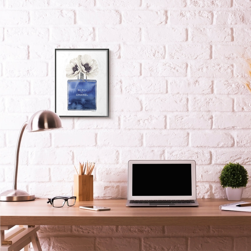Fashion Designer Perfume Flower Blue Watercolor Black Frame design by Amanda Greenwood. It is time to set up your room with of our fresh new ‘Framed Giclee Textured Wall Art’ pieces. Our textured artwork will add more depth and dimension to any space. Each piece is mounted with a 1.5 inch thick ebony wood grain frame that is ready to hang! Looking for a statement piece?