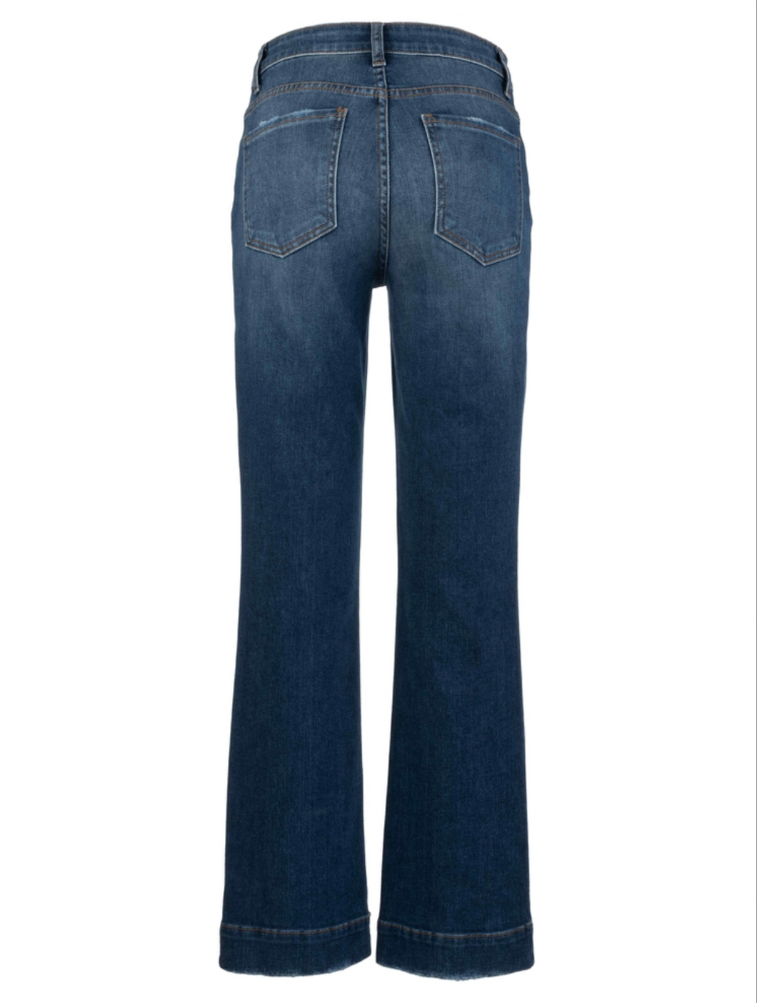 Kelsey Cool High Rise Ankle Flare Wide Hem Jean Experience effortless style with these high-rise ankle flares, designed for modern comfort and timeless appeal. The wide hem creates a flattering silhouette while the cool denim fabric keeps you comfortable throughout the day. Perfect for dressing up or down, these jeans transition seamlessly from casual weekends to polished office looks. The high-rise cut offers gentle support and a refined fit that works with any wardrobe. A versatile essential that combines contemporary design with everyday wearability.