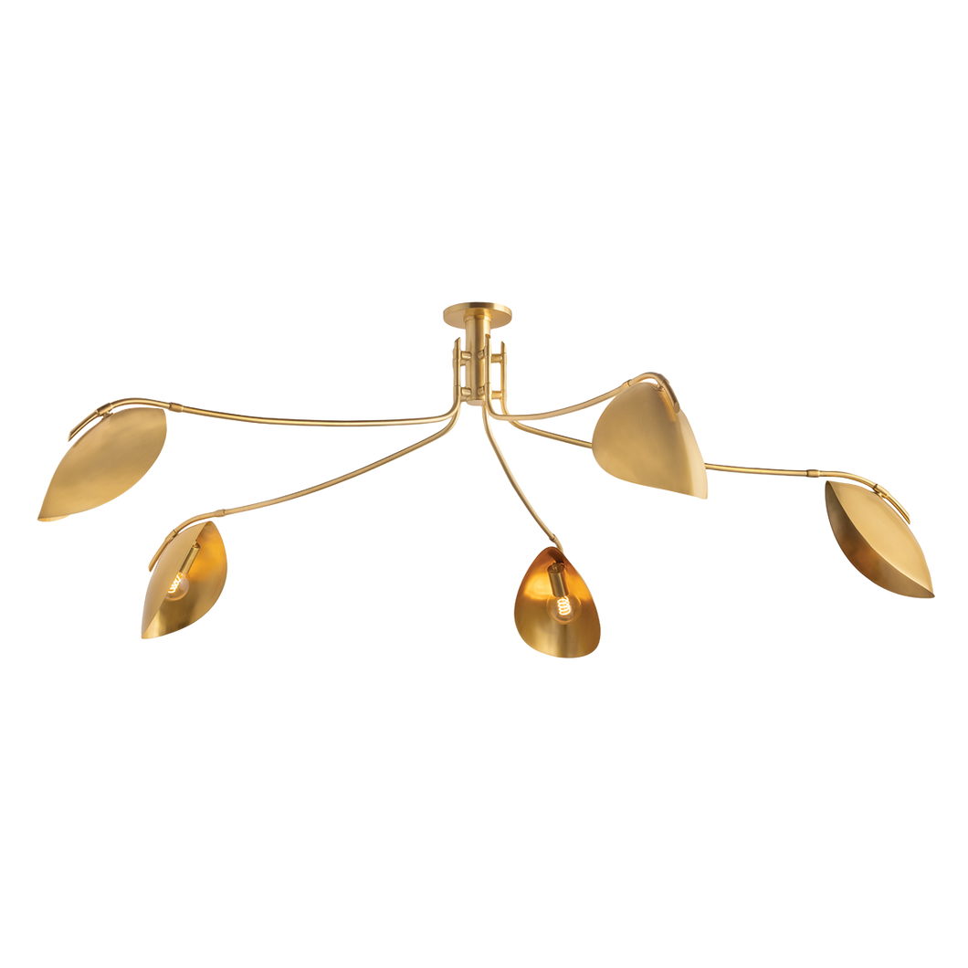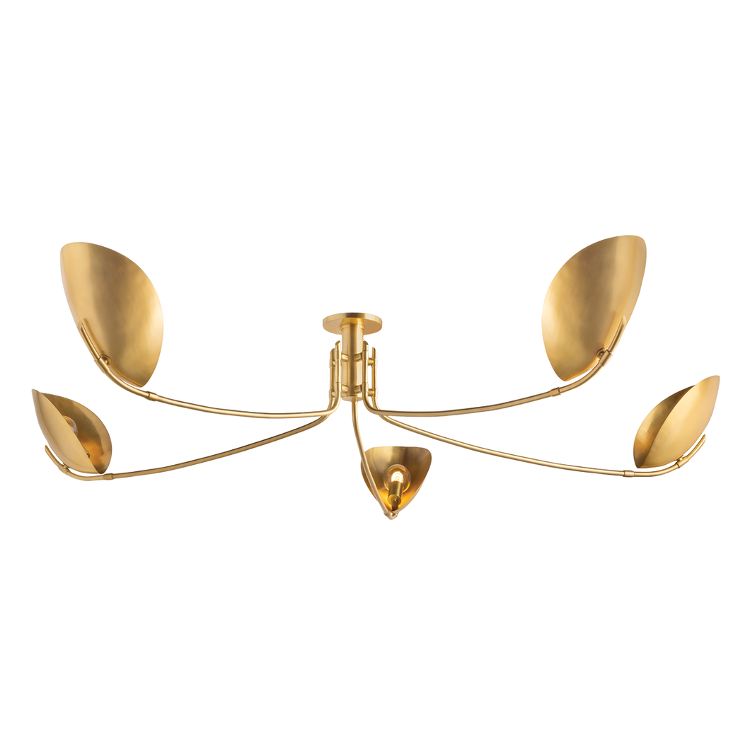 Avondale 5 Light Semi Flush, Aged Brass