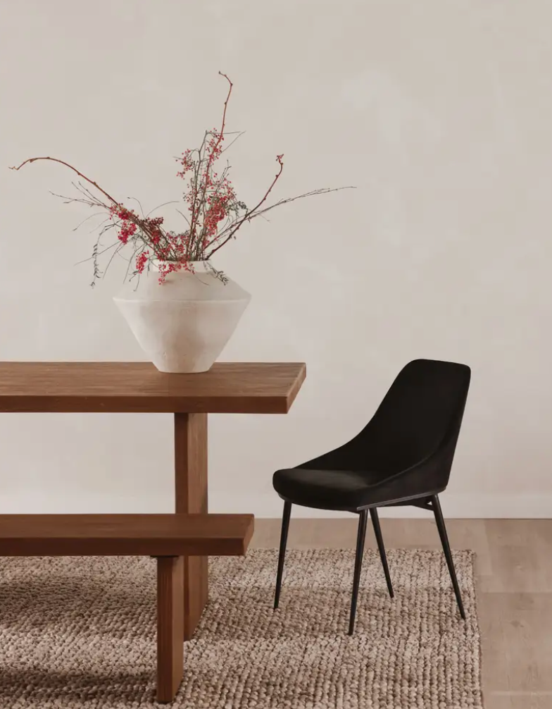 Simple and sophisticated with a modern appeal, the Sedona dining chair's soft, easy-to-clean velvet upholstery brings effortless style. Much like memory foam, Sedona's high-quality molded foam provides long-lasting comfort alongside its curved back and sides.
