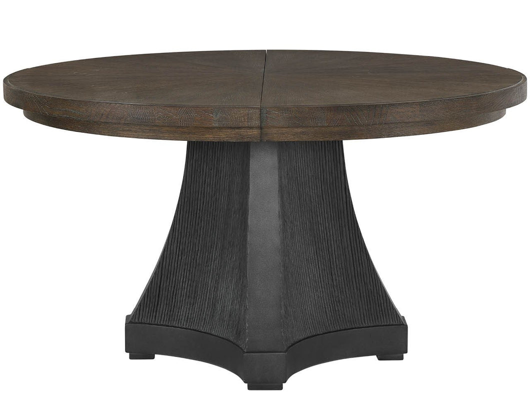 The Cinder Dining Table creates a striking centerpiece, combining a rich Cocoa wood top with an innovative glass-reinforced concrete base. This 54-inch round table features a beautiful radial pattern while the sculptural Cinder base delivers dramatic visual impact, perfect for sophisticated dining spaces.