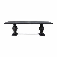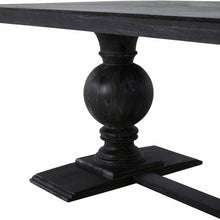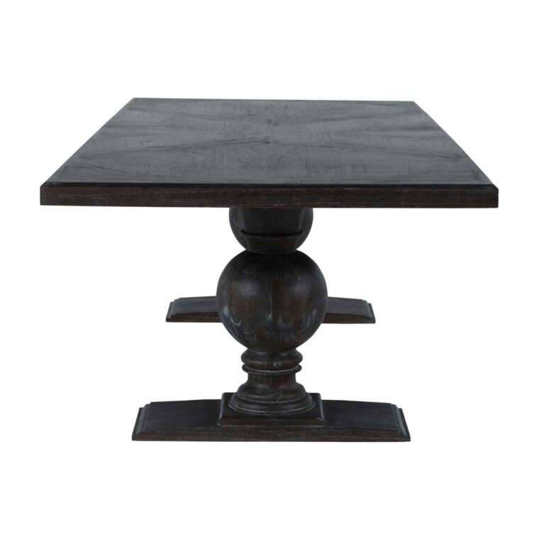 This traditional trestle table is supported by boldly shaped yet refined pedestals for versatile transitional styling. The tabletop adds glamour to the piece with detailed geometric patterning, all in a dark antique brown washed finish that complements a array of decorating styles. Material: Mindy Wood Finish: Cerused Ash Size: 105 x 44 x 30.75”