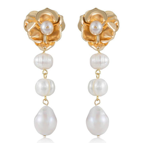 Daphne Pave Gold Frame Drop Earring-Rose Quartz