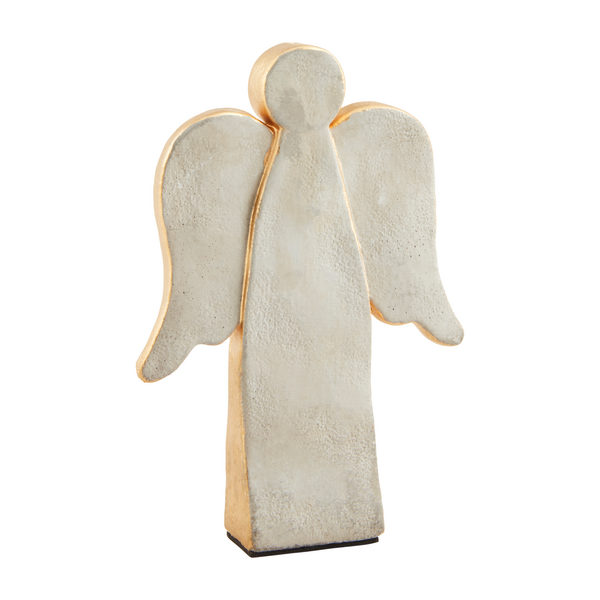 The Small Gold Concrete Angel is a stunning decorative piece that will add a touch of elegance to any space. Crafted from high-quality concrete, this angel figurine features a beautiful metallic foil finish in a luxurious gold hue. Measuring 6 3/4" in height and 4 3/4" in width, it is the perfect size to display on a shelf, mantel, or tabletop. The intricate details of the angel's wings and flowing gown are expertly captured, creating a visually captivating piece of art. Whether used as a standalone accent or as part of a larger decorative arrangement, this Small Gold Concrete Angel is sure to be a conversation starter and a cherished addition to your home decor.