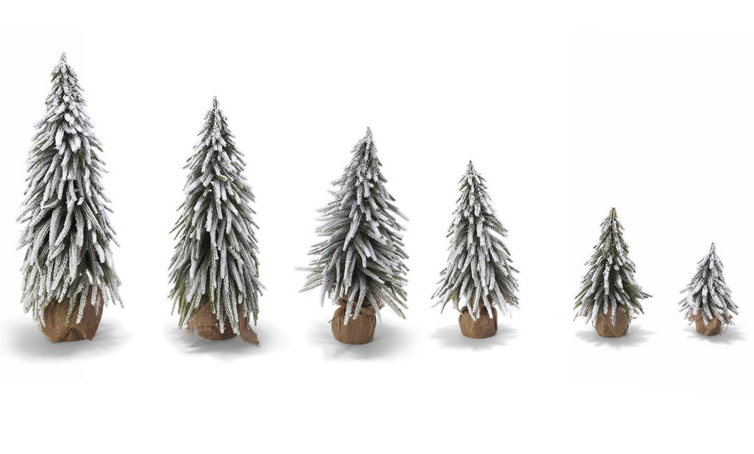 Winter snow covered trees, sold separately, 6 sizes available! Shop all HERE.   Material: PLASTIC Dimensions: from 2" Dia x 8"H to 3 1/2" Dia x 23 1/2" H