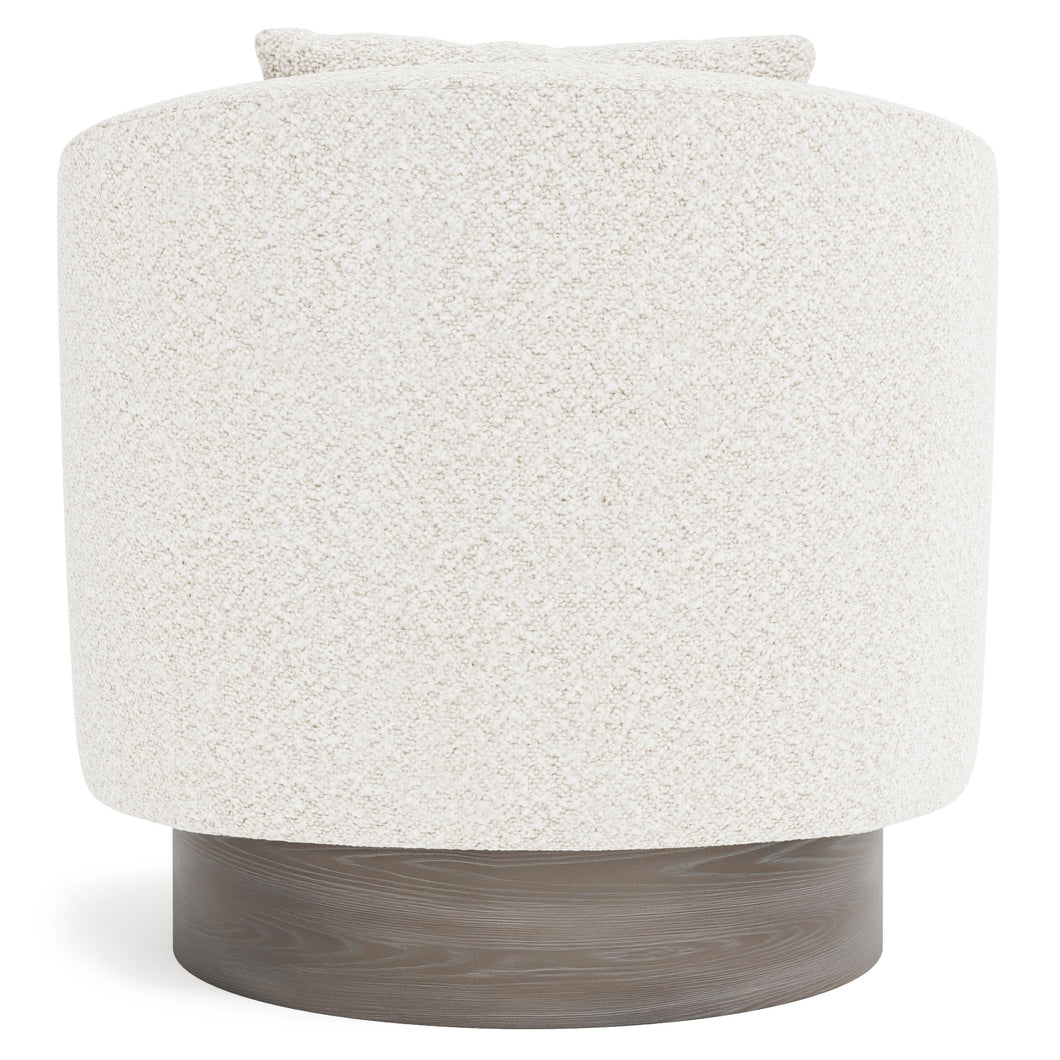 The Camino swivel chair is elegance in motion. Luxurious spring down cushioning invites relaxation, while the barrel back design brings softness and balance to a room. In keeping with the clean modern aesthetic, a wide, round wooden base conceals the swivel. Welt trim is a subtle finishing touch.