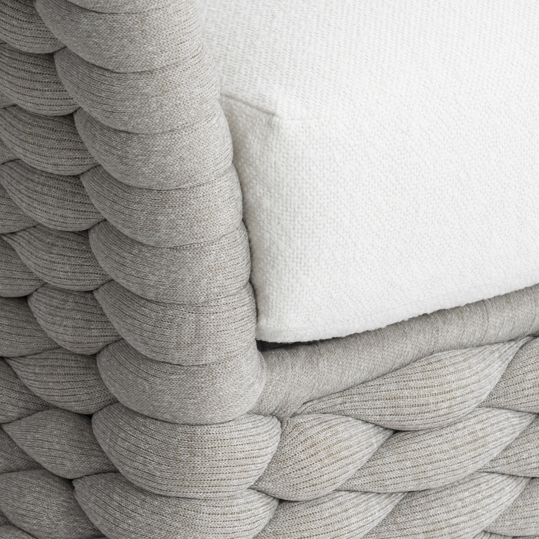 The Salinas swivel chair has an innovative style that's crafted from a soft-knit sock weave in Nordic Grey finish, wrapped around a curvaceous aluminum frame. The texture of the frame is complemented with a comfortably deep seat cushion and a loose back pillow. The unique design offers an elevated look for outdoor living.