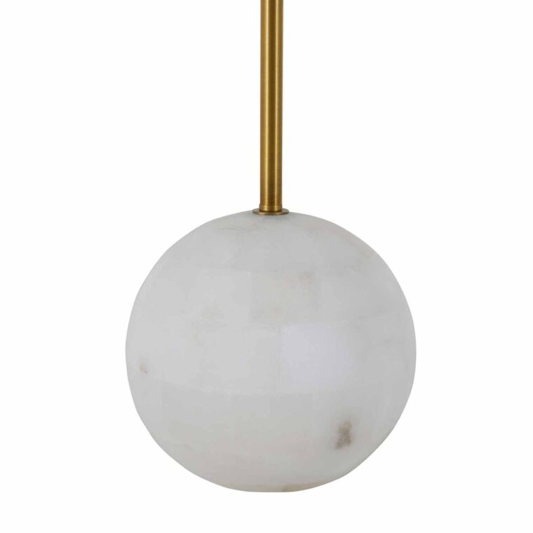 This tall, skinny console lamp is the essence of simple, clean design. Accented with a gold-toned metal detail at the bottom of the shade and a solid alabaster ball as its base. The slim styling of this lamp makes it ideal for use in small spaces. Materials: Alabaster, Metal Finishes: Stained Gold, Natural Alabaster Size: 10 x 10 x 28.4”