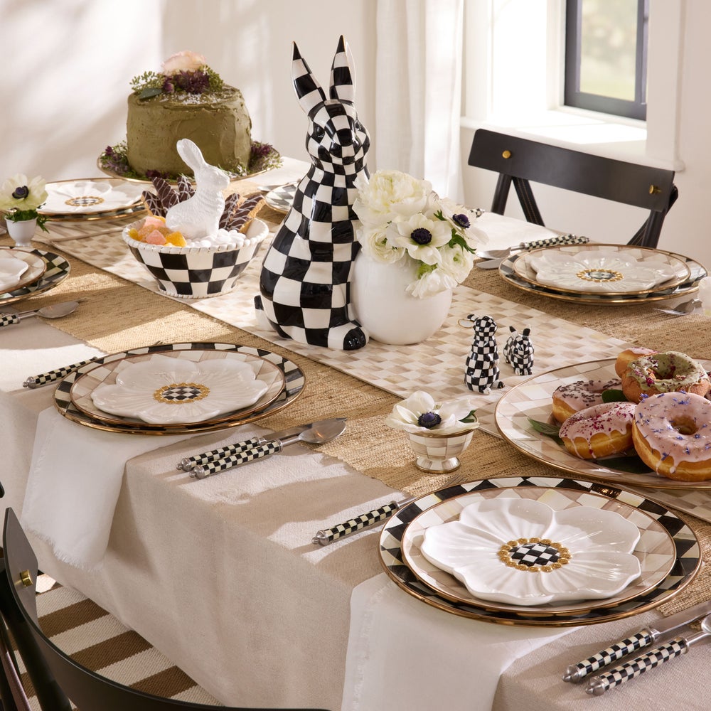 Set the scene for spring celebrations with this ceramic floral blossom dessert plates. They’re trimmed with a center of hand-painted check that’s accented with gold lustre.