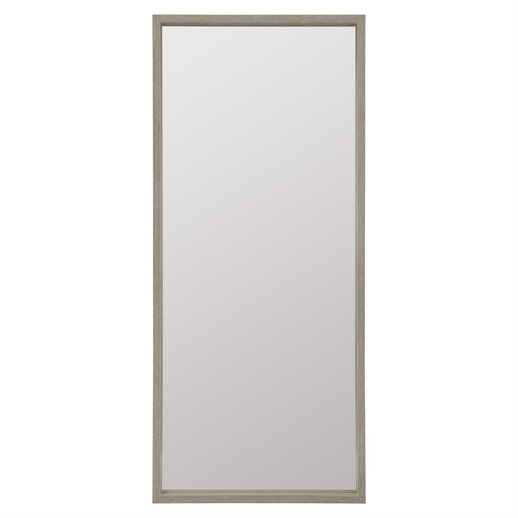 Rectangular wood-framed floor mirror in Dune finish with inset, non-beveled mirrored glass