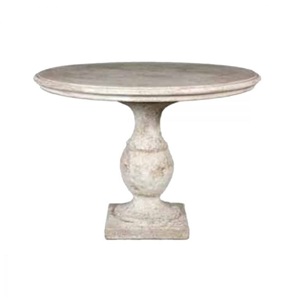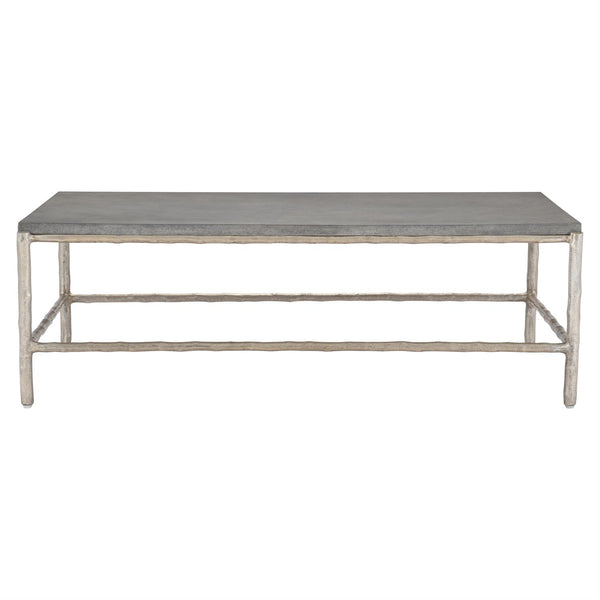 A strikingly simple poly-resin top derived from river sand is polished to a smooth sheen. An angled, matte black iron base adds architectural appeal to this large-scale dining table. Slight color variance is to be expected, and speaks to lava stone's organic nature. Cover or store indoors during inclement weather and when not in use.