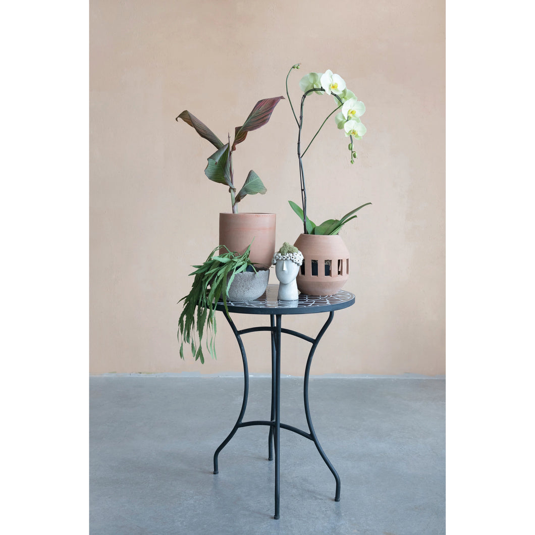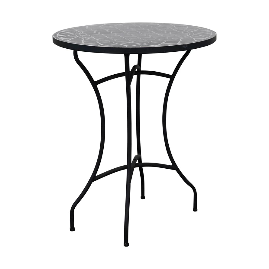 23-1/2" Round x 28-1/4"H Metal Indoor/Outdoor Table w/ Mosaic Top, Black,