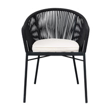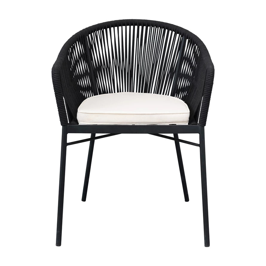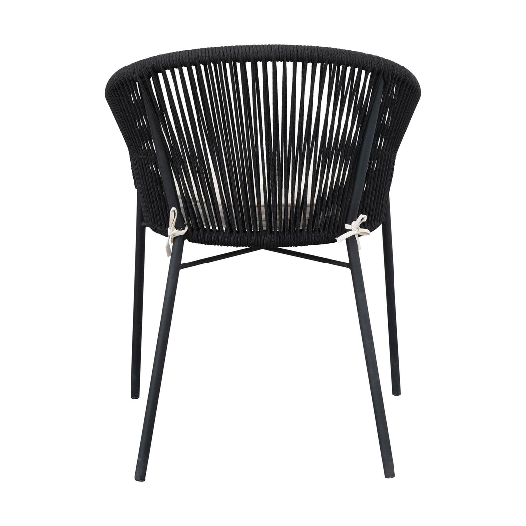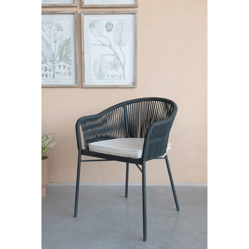 20-1/4"W x 20"D x 31-1/2"H Metal & Woven Rope Indoor/Outdoor Chair w/ Cream Color Cushion, Black