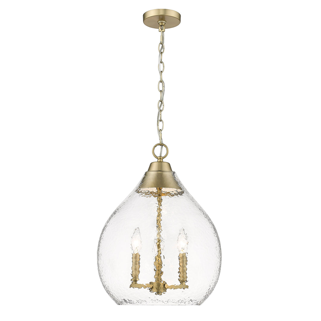 With an eye-catching silhouette that invites onlookers, this sophisticated series features rustic textured glass and a stylish, modern form. This collection is sure to spark conversation. Ariella’s beautiful, hammered glass is suspended by gravitational tension placed on the conical cap. The hand-blown artisan glass plays with light, reflecting, refracting, and creating stunning shadows. The design is offered in select mix and match options. Enhance your home’s décor with the beauty of the Ariella 3-Light pendant.Finish: Brushed Champagne BronzeGlass/Shade: Hammered Clear GlassHeight: 20"Width: 14.75"Extends: Weight: 9.88Backplate/Canopy: 4.75"Dia x 0.75"EBulb Included: NoNumber of Bulbs: 3Socket Size: E12/CandelabraType of Bulb: Incandescent, Type BWattage: 60Voltage: 120Dimmable: YesWarranty: 1 Year Limited