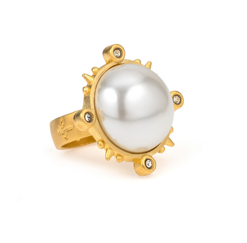 STERLING SPIKED RING WITH PEARL CABOCHON