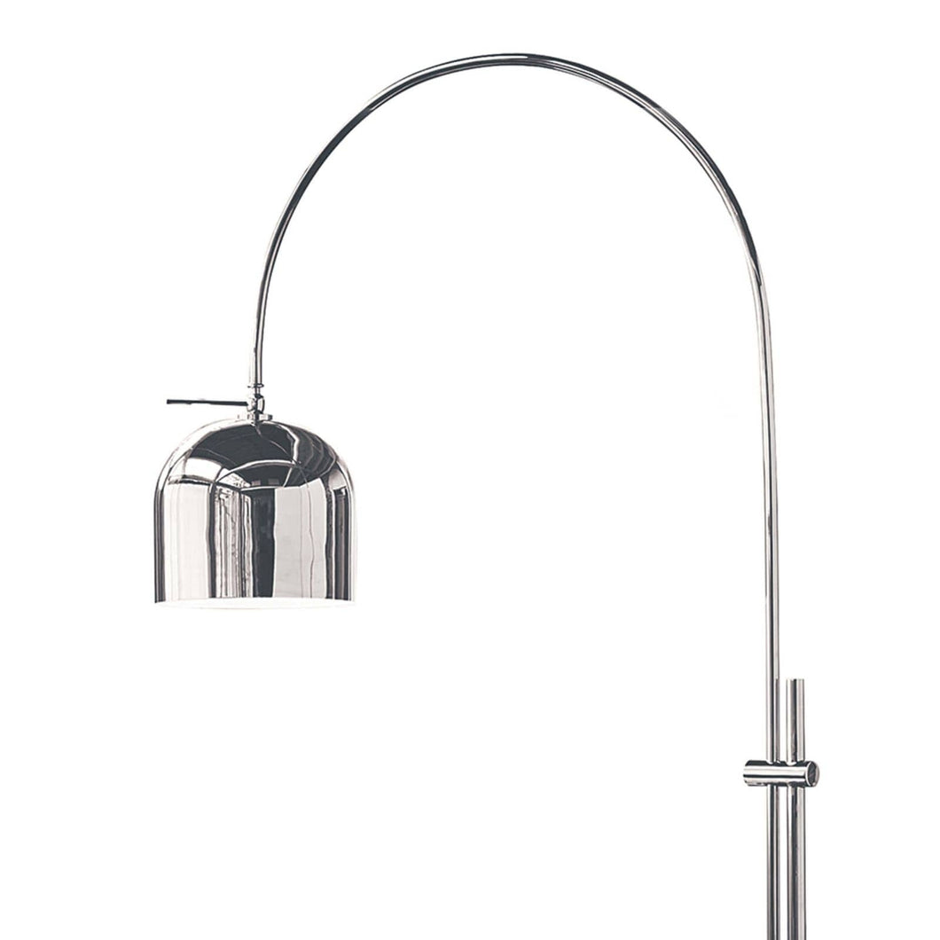 This adjustable arc floor lamp boasts a uniform metallic base and shade, a sleek and modern addition that seamlessly fits into any room.