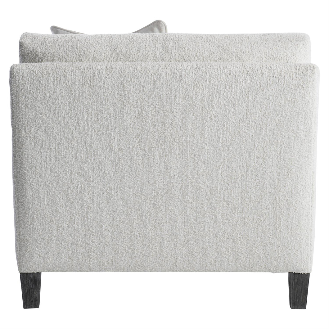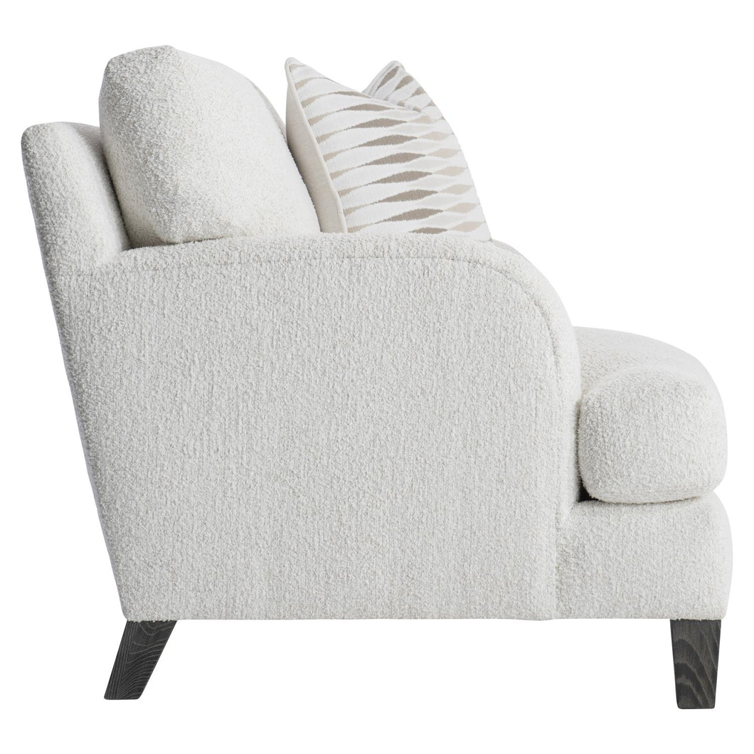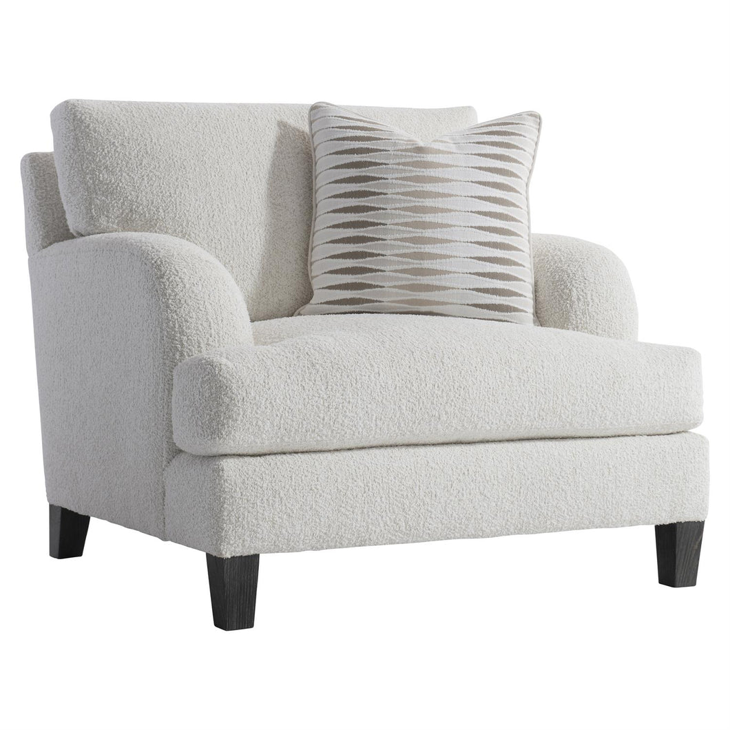 High-loft cushions and a deep seat create a comfort destination in the Ariel chair. The seat cushion and back pillow are tailored with a T shape, and the generous proportions are completed with softly rounded and upholstered arms. The included throw pillow adds even more softness.