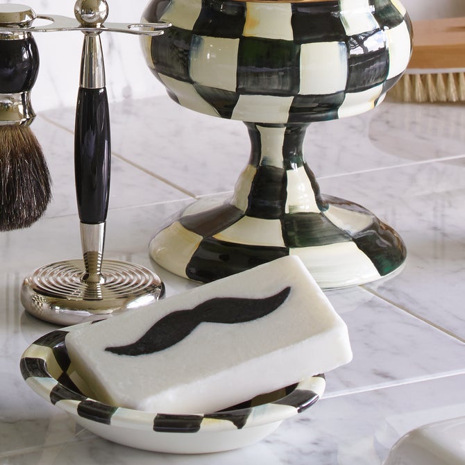 If cleanliness is indeed next to godliness, our enamel Courtly Check® Soap Dish will certainly help your cause. With our signature Courtly Checks® hand-painted onto a steel underbody, you’ll want one in the powder room, the master bath, and by the kitchen sink so this charming dish is always within reach. The simple elegance of our most popular pattern makes it part of a useful gift set to accent any decor with matching tumbler, tissue box cover, and waste bin. With a subtle jewel-tone palette woven by an artisan’s brush through the glossy, hand-painted, high-contrast checks, we’ve yet to find a color that doesn’t look good with Courtly Check.Product #:89601-40