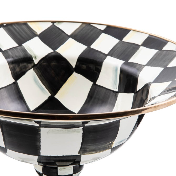 An indispensable party serving dish, the Large Courtly Check Compote is decorated with our signature hand-painted checks. It has a steel underbody and bronzed stainless-steel rim. Product #: 89221-40R