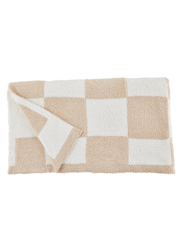Tan Chenille Checkered Blanket