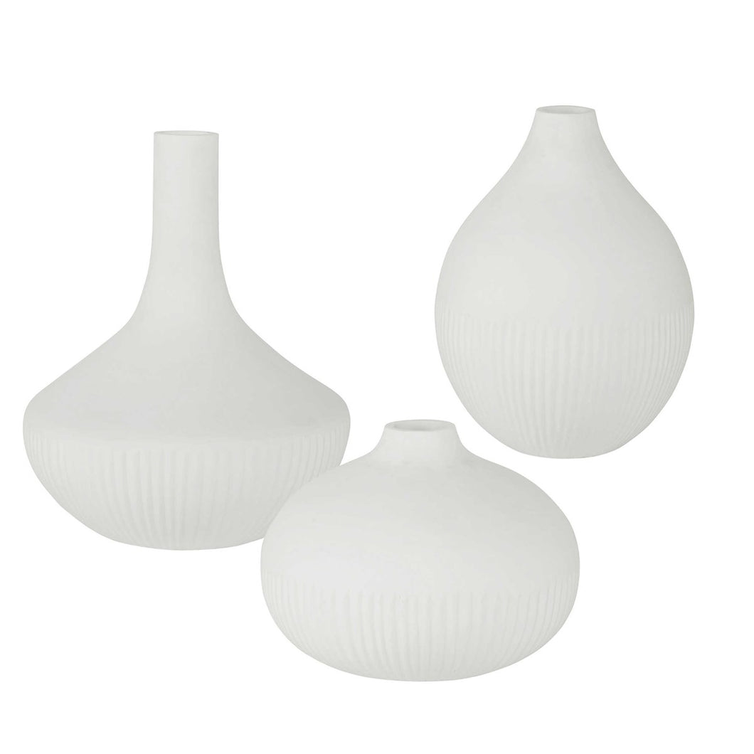 The Apothecary Vases showcase three varying curved silhouettes accented by carved details in a satin white finish. Sizes: S-8x6x8, M-8x11x8, L-10x12x10. Sizes sold separately! Shop all sizes here.