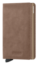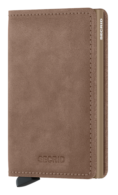 Its slim profile makes the Slimwallet fit perfectly into every pocket. The open exterior is cut extra wide to hold cards, banknotes and receipts.