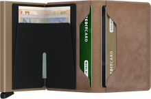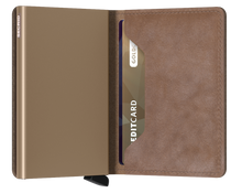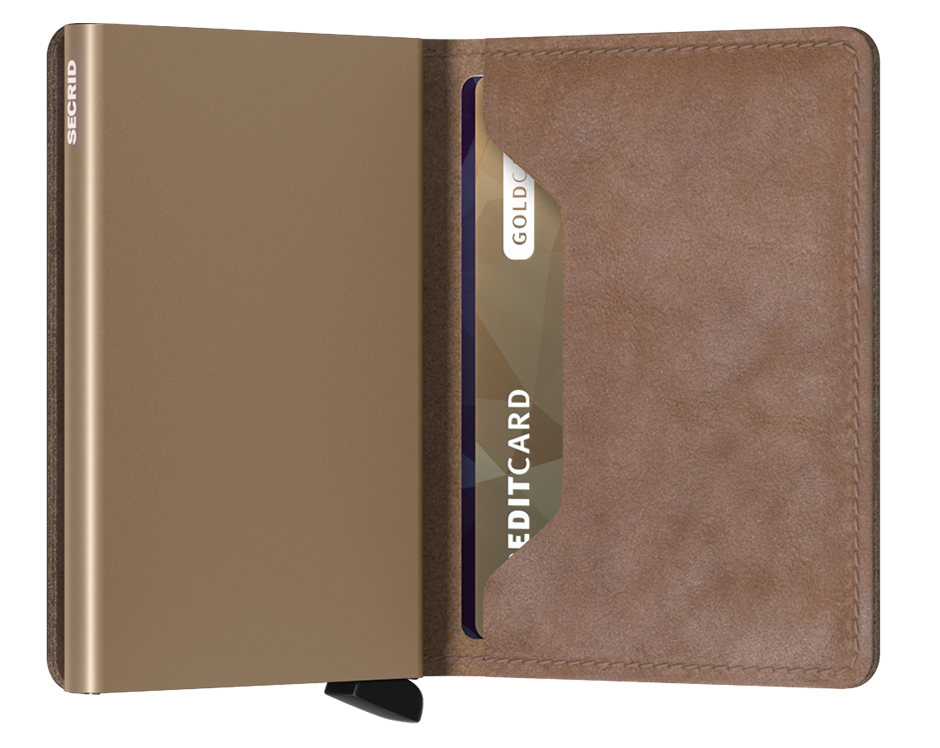 Its slim profile makes the Slimwallet fit perfectly into every pocket. The open exterior is cut extra wide to hold cards, banknotes and receipts. The Cardprotector mechanism allows you to slide out cards with one simple motion, while the aluminium protects your cards from bending, breaking and unwanted wireless communication.