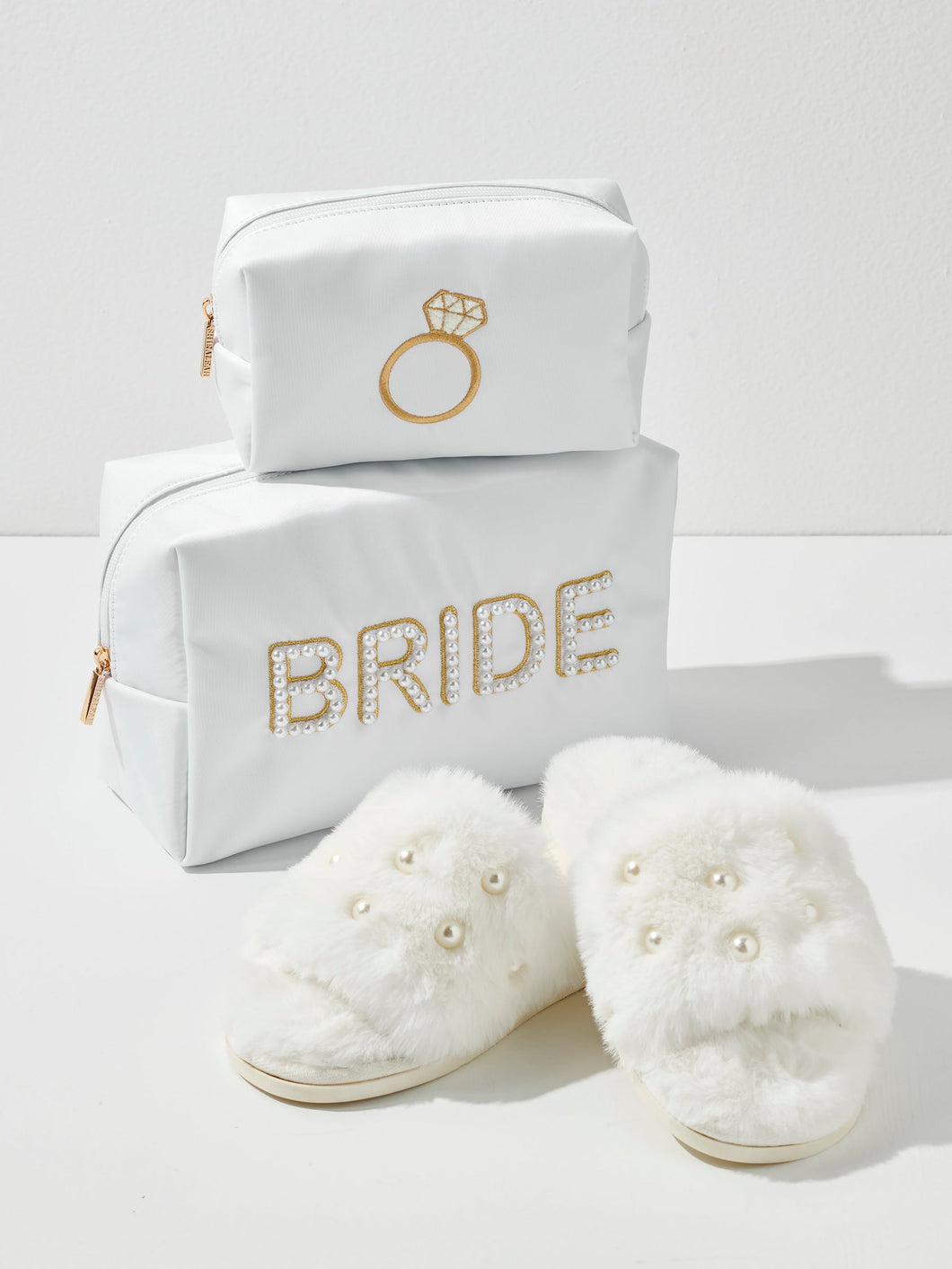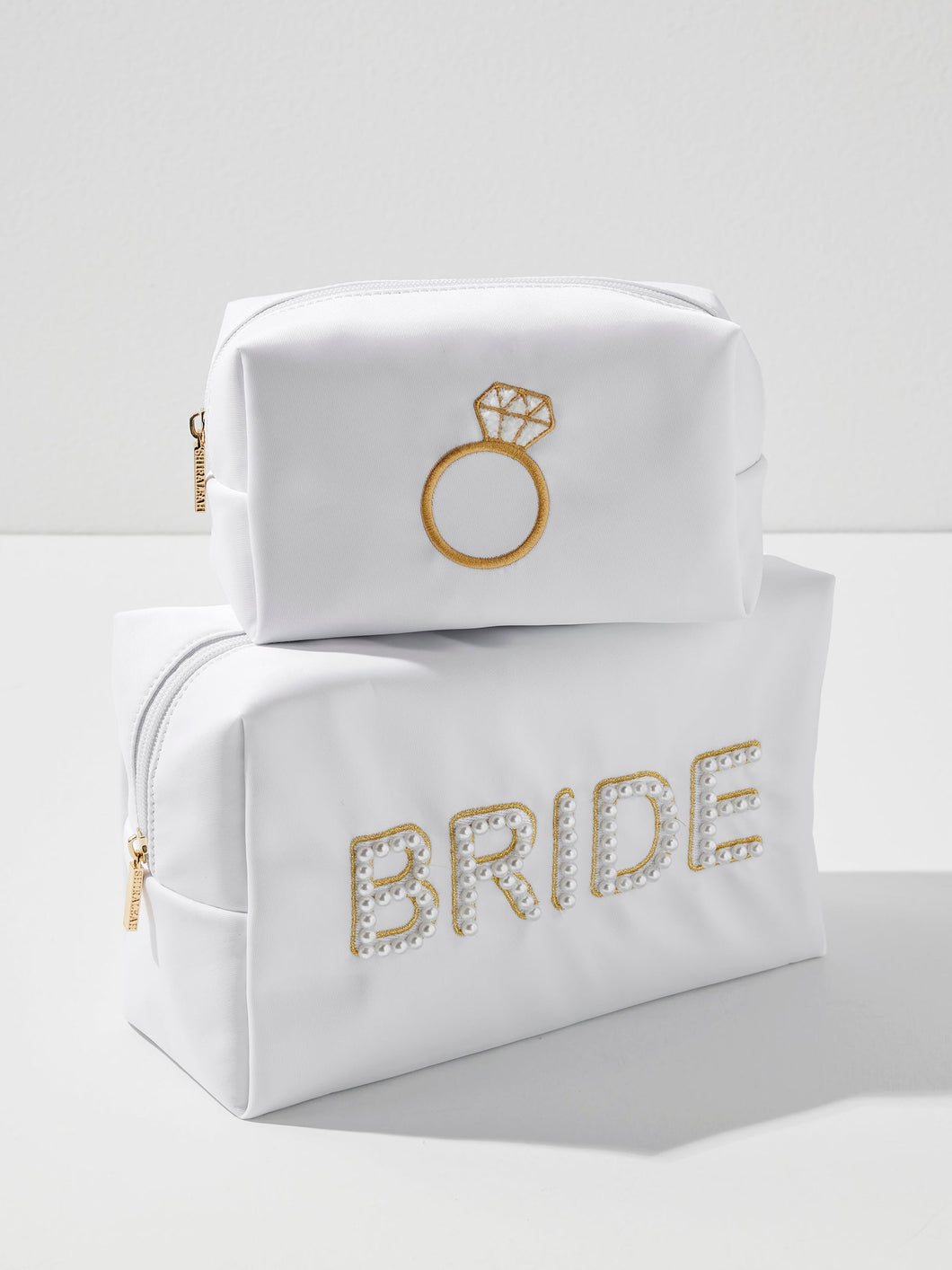Meet the Bling Ring Small Zip Pouch – the perfect sparkle companion for your essentials! Featuring a chic white design with an elegant gold ring embroidery, this pouch adds a touch of glam wherever you take it. Compact yet functional, it’s ideal for storing makeup, jewelry, or those little extras you need on the go. A gold zipper detail completes the luxe look, making it a must-have for brides, bridesmaids, or anyone who loves a little dazzle. Pair with other items in the Hitched Collection to complete your bridal look!