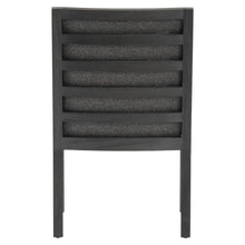 • Upholstered back is visible through ladderback slats