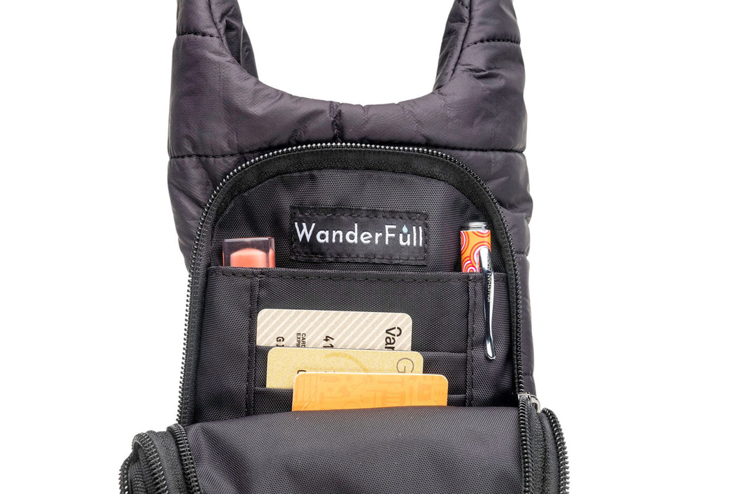 • Carries Essentials with TWO pockets — Store your travel & daily essentials in the large double-zippered pockets; The outer pocket is designed to fit the largest cell phones while the inner pocket has a place for a passport, credit cards, Airpods & more; More practical than most small bags