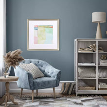 A contemporary pastel print that is double matted and framed under glass with a brushed silver frame.
