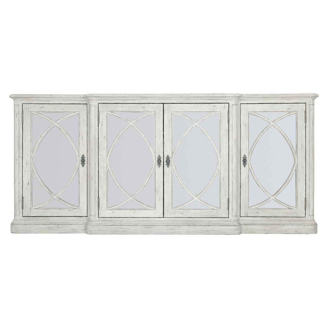 - Four doors with cast grille over inset antiqued mirrored glass panel