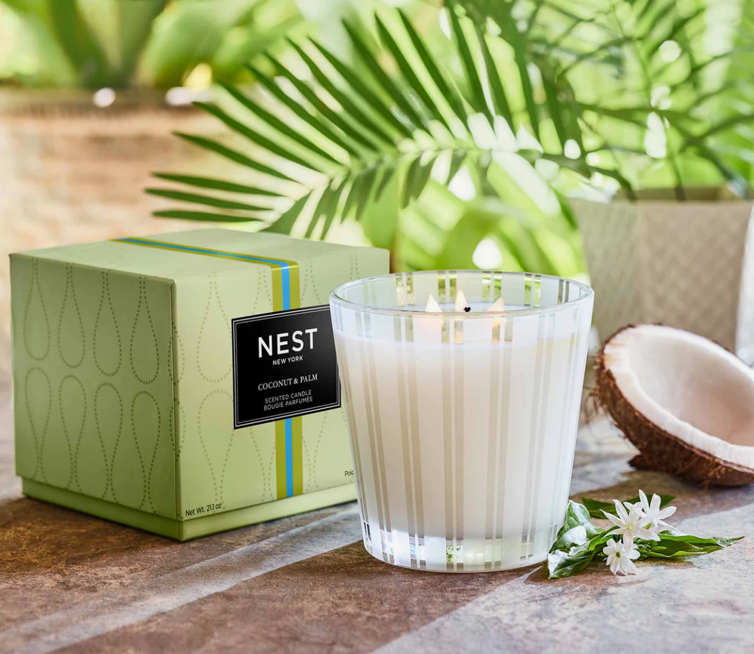 A perfect gift and an indulgent treat for yourself, this Coconut and Palm 3 Wick Candle by Nest Fragrances will fill your space with a delightful fruity aroma. It burns up to 100 hours for an extended experience that will last and last. Shop now at Laura of Pembroke.