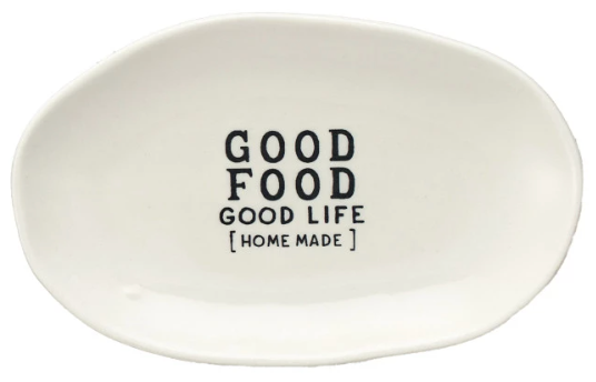 Introducing the Good Food Good Life Stoneware Dish, the perfect addition to any kitchen. Its unique design adds a touch of charm to your cooking and serving experience. Made of durable stoneware, it's both functional and stylish. Elevate your meals with this cute stoneware dish.
