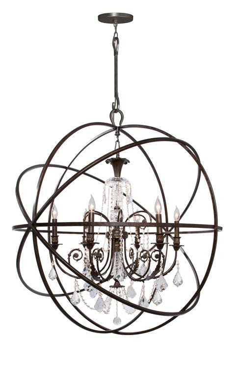 SOLARIS 6 LIGHT STRASS CRYSTAL SPHERE CHANDELIER, ENGLISH BRONZE
