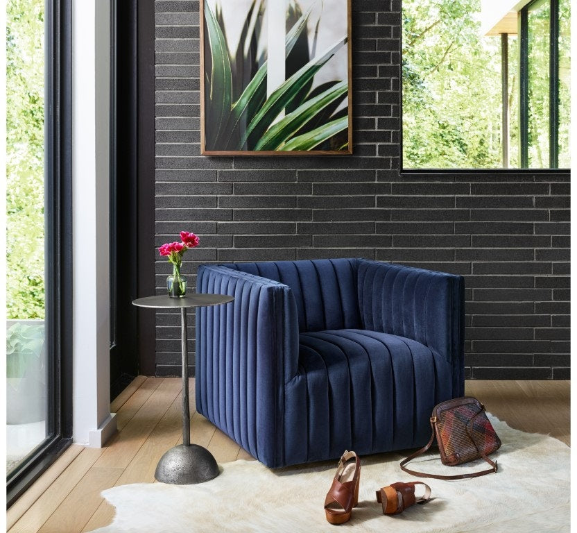 Swivel chair comes in multiple fabric options. Please contact our store for more details.