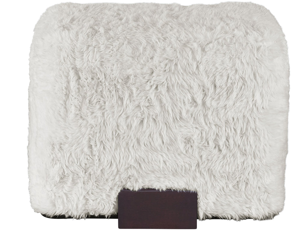 Make a subtle statement with this super soft ottoman, covered in Yakety Yak fabric and accented with a dark walnut finish.